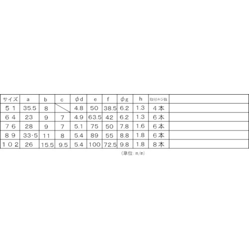 | セット内容 | ●取付用ビス(51mm:8本、64・76・89mm:12本、102mm:16本) |