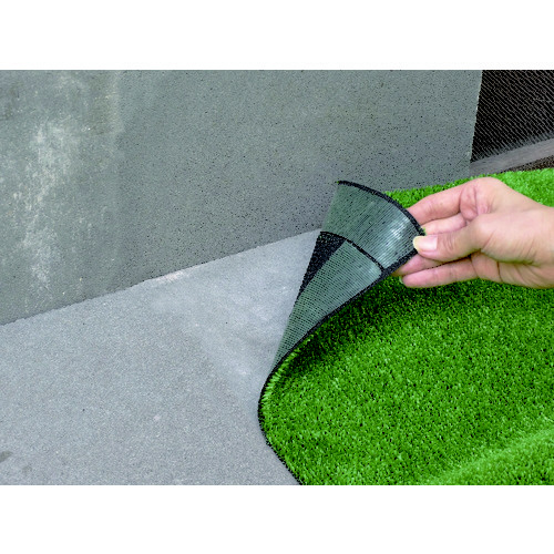 人工芝側にブチルゴム、地面側にアクリル系粘着剤を使用しており、はがす際に地面にのり残りしにくくなっています。