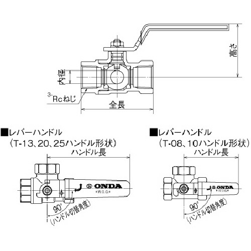 T型(三方)ボールバルブ レバーハンドル Rc1×Rc1×Rc1 T-25