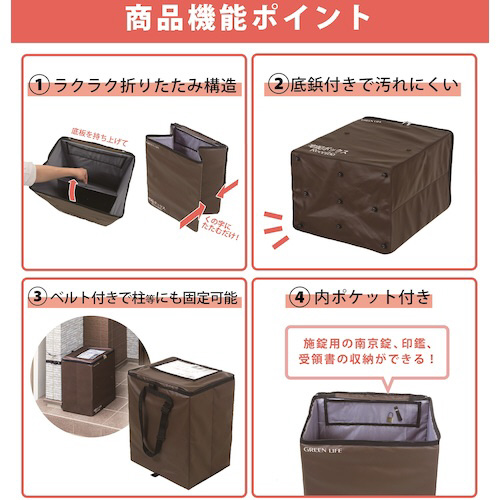 折りたたみソフト宅配ボックス(簡易設置タイプ) Receibo(レシーボ) ブラウン TRO-3452(BR)