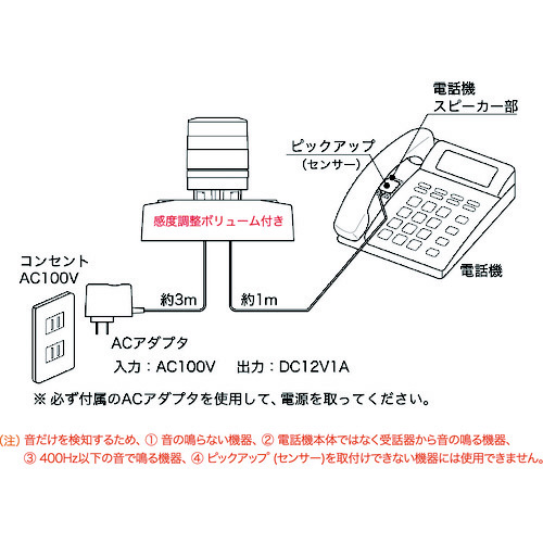 電話が着信すると、着信音を検知して点滅灯が作動します。
