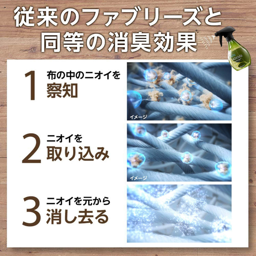 植物由来の消臭成分と、100%自然由来の香り。ファブリーズを使いたい洗えない布製品はあるけど、化学的な香料の香りには抵抗感がある ー そんなナチュラル志向の女性たちのために開発。従来のファブリーズ同等の消臭・除菌の効果はそのままに、 ブランド史上初となる100%植物由来の香りで仕上げました。暮らしをさらに豊かに、心地よいものにしてくれます。