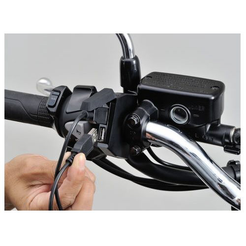 狭いスキマにUSB! 厚さ13.5mmのスリムなUSB電源。ハンドルクランプはΦ22.2/25.4mm対応!