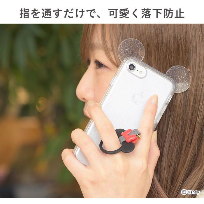 ディズニーキャラクターが可愛いリングストラップ。リングに指を通して、落下防止をさりげなくサポート!