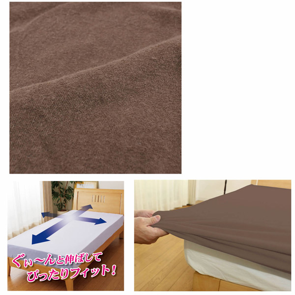【ボックスシーツ兼ワンタッチシーツ】のびのびぴったりパイルシーツ(セミダブル/ダブルサイズ兼用/ブラウン)