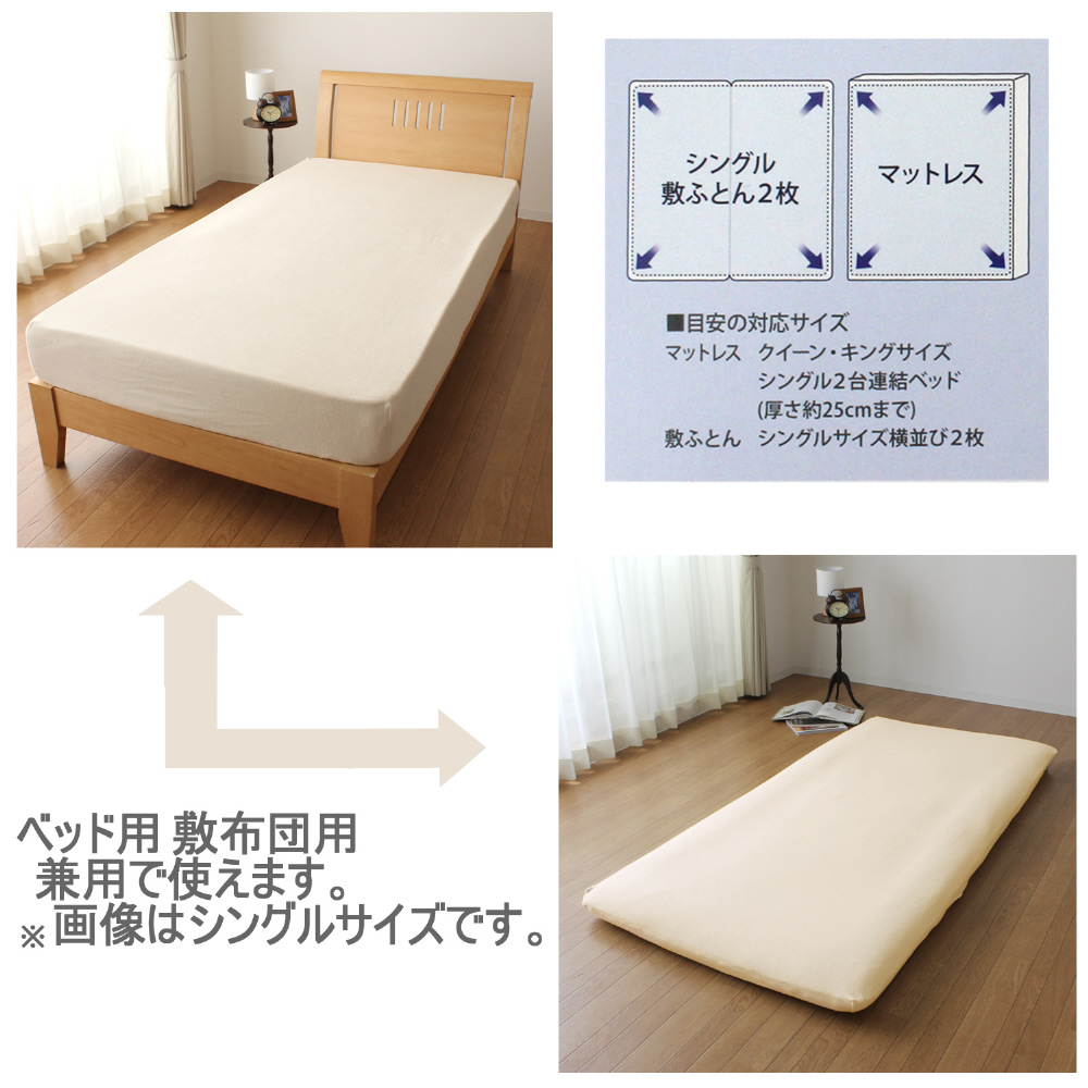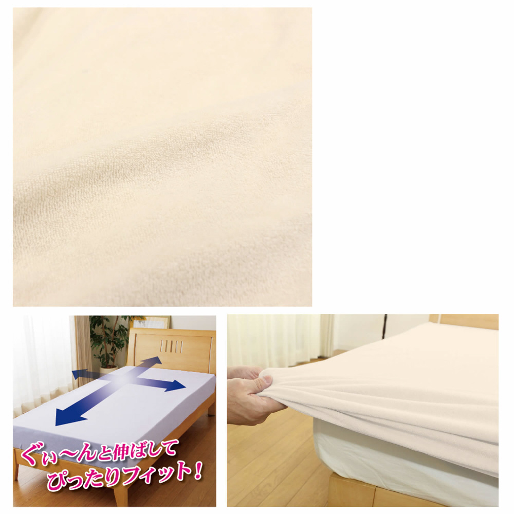 メリーナイト シーツ のびのびぴったり パイルシーツ アイボリー クイーン〜キング共通サイズ マットレス・敷ふとん兼用タイプ ストレッチ素材 シワなくピッタリフィット ふんわりやさしい肌触り 洗える
