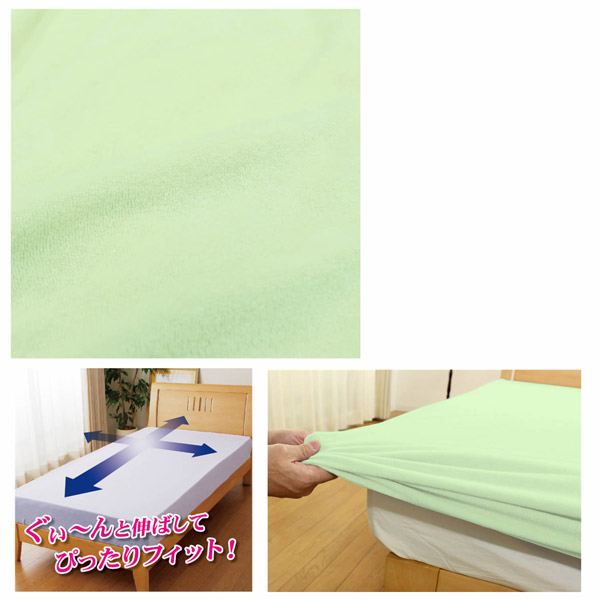 【ボックスシーツ兼ワンタッチシーツ】のびのびぴったりパイルシーツ(セミダブル/ダブルサイズ兼用/グリーン)
