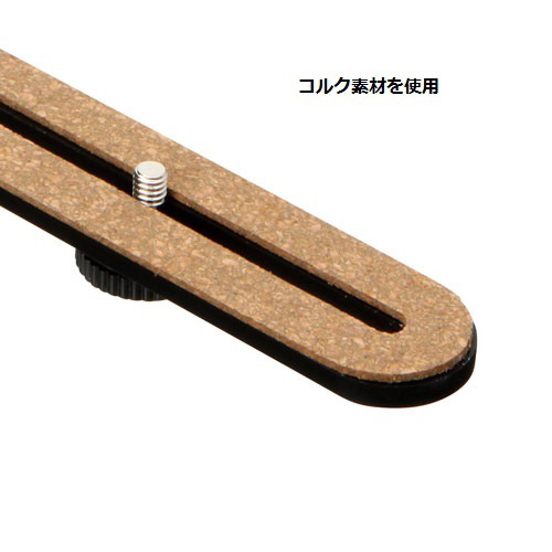 フリープレート上面にはカメラが傷つきにくく、すべりにくいコルク素材を使用しています。