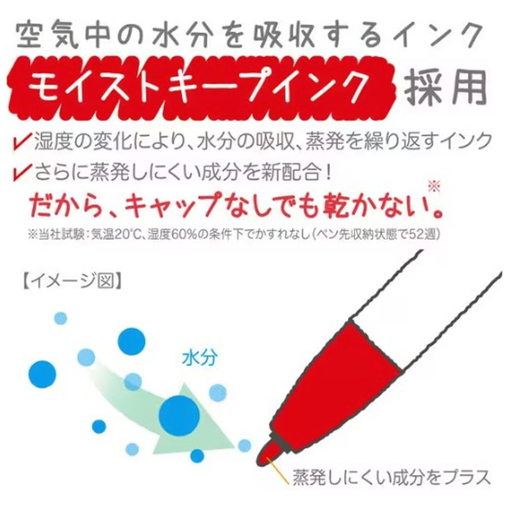 ノックしてすぐ書ける&乾かないモイストキープインク搭載!