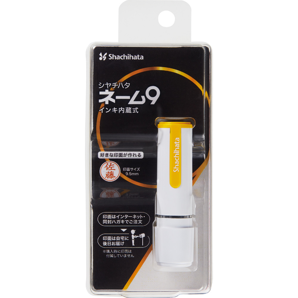 シヤチハタのネーム9に、メールオーダー式が登場。ギフトにも最適なパッケージ入り仕様で、9色のカラーバリエーションをご用意しております。