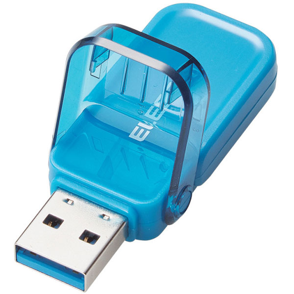 片手で抜き差しできるフリップキャップ式のUSB3.1(Gen1)/USB3.0対応USBメモリ。
