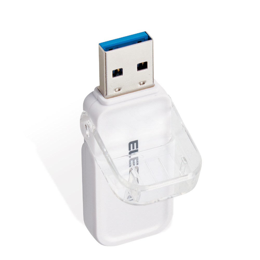 片手で抜き差しできるフリップキャップ式のUSB3.1(Gen1)/USB3.0対応USBメモリ。
