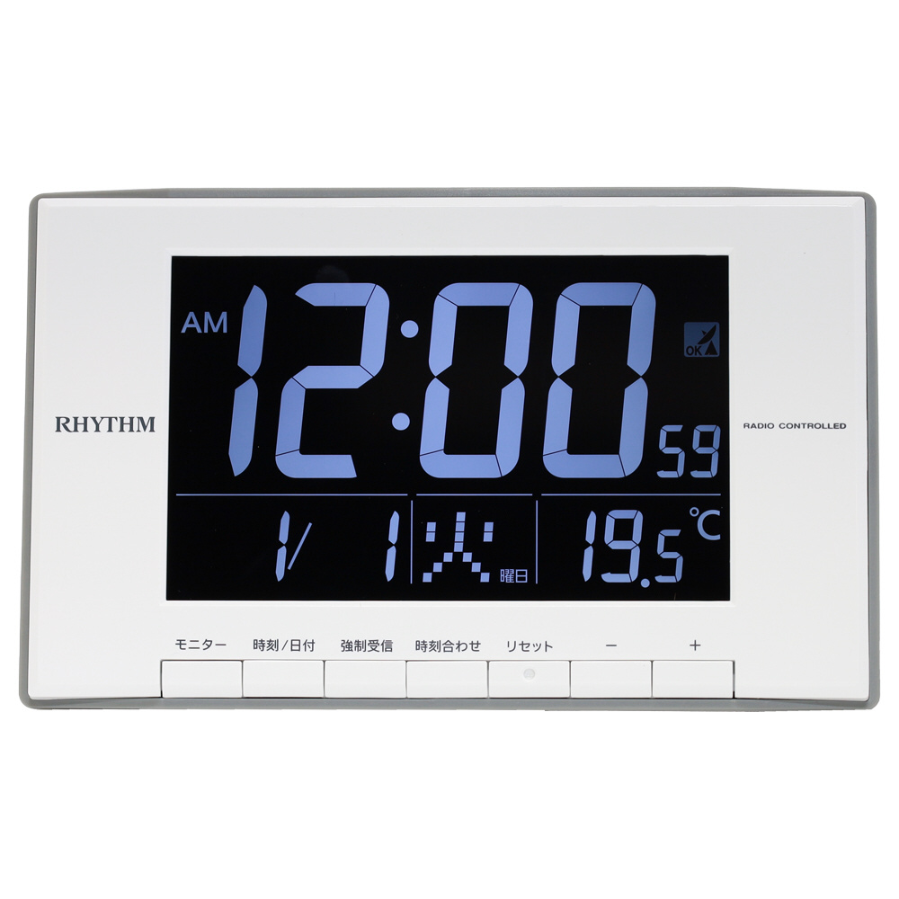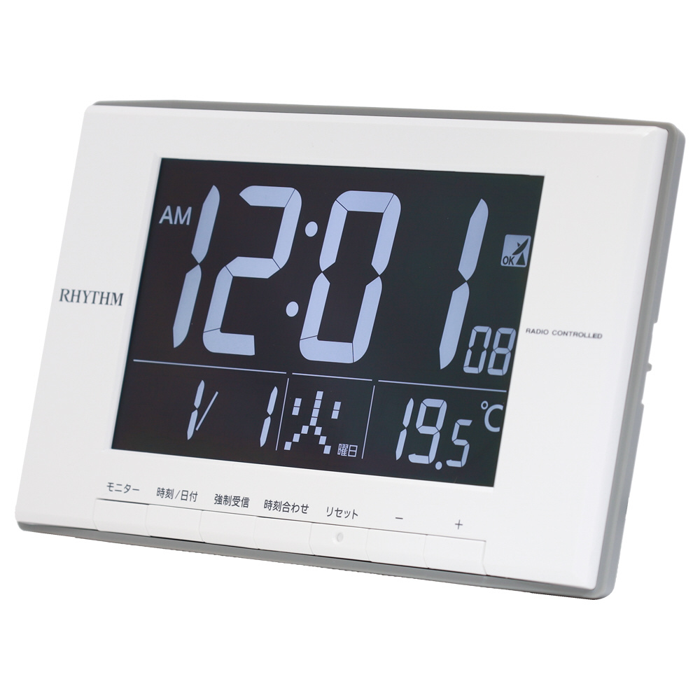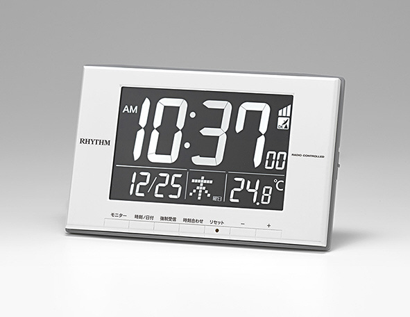 大きな液晶サイズが特徴のAC電源電波時計です。文字と背面にコントラスト差をつけ、視認性にこだわりました。便利な掛置兼用タイプもポイントです。