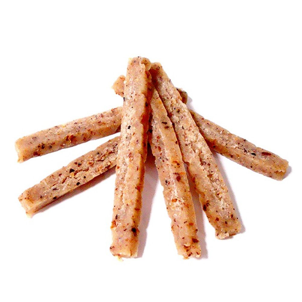 ・かつお節の風味が利いた白身魚ベースのおやつです。新素材のホワイトソルガムは白高キビです。鶏と小麦は使用しておりませんので、食物アレルギーの気になるワンちゃんにもおススメ。