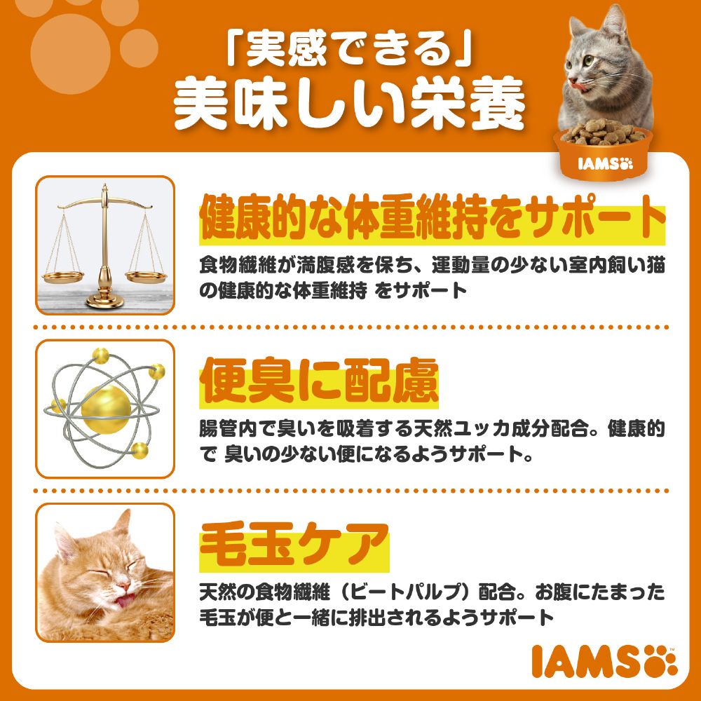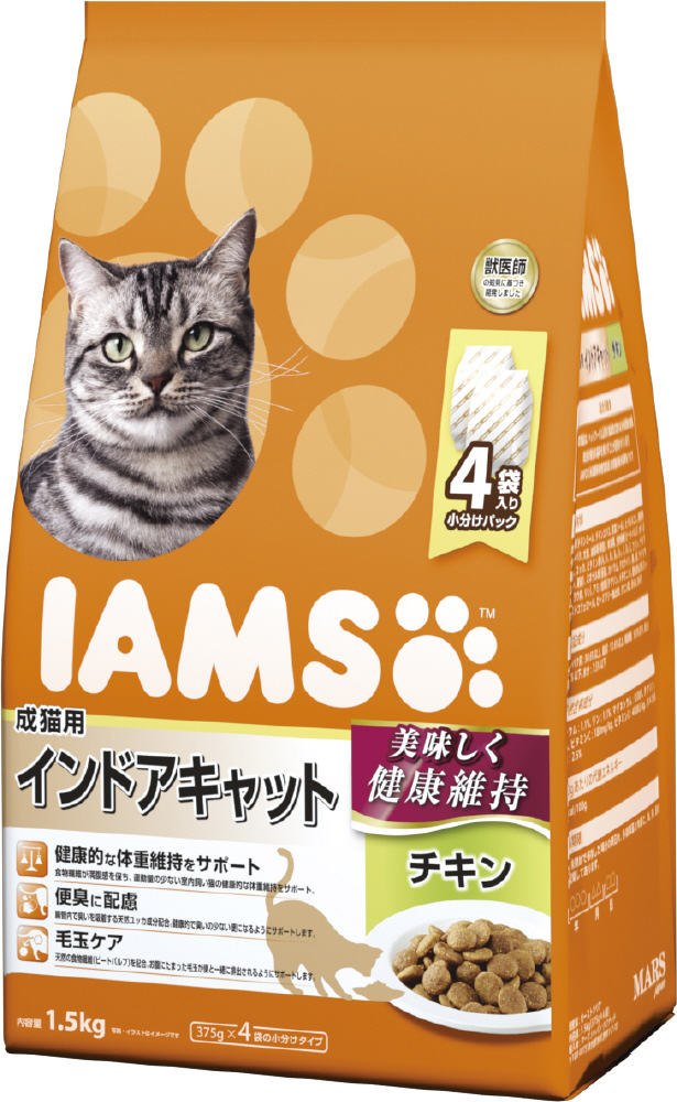 | 商品名 | IAMS(アイムス)成猫用 インドアキャット チキン 1.5kg(375g×4袋) |