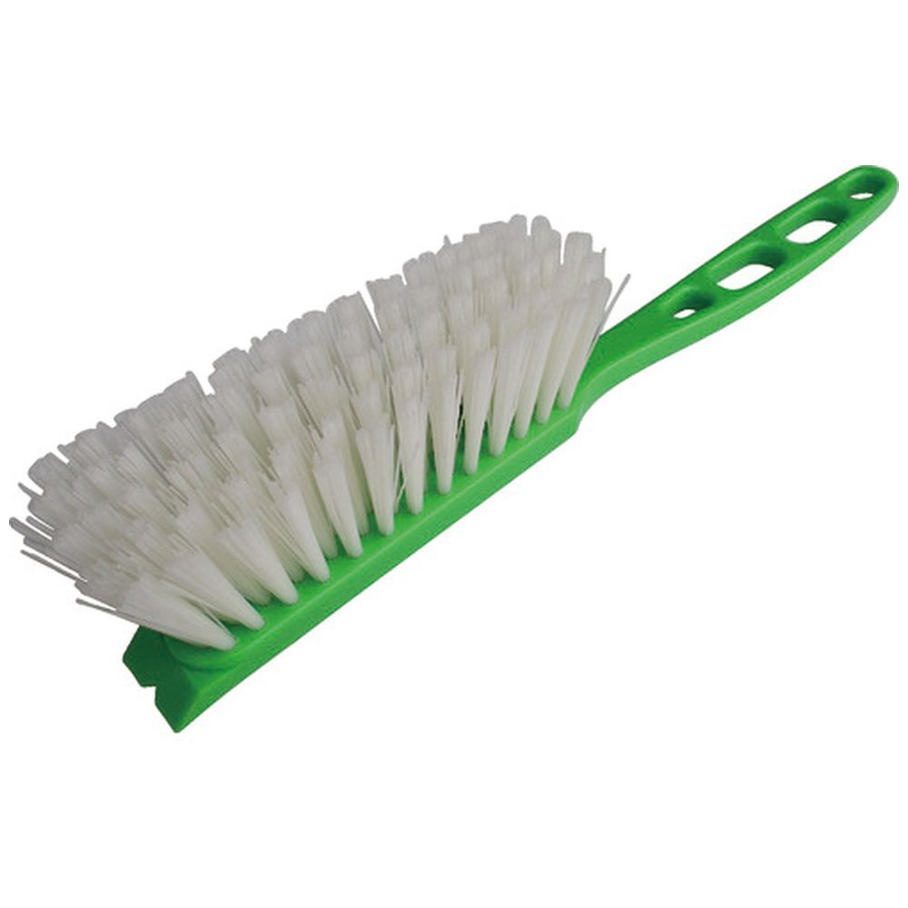 ハードな毛先でプラ舟や道具箱についた「ガンコ」な汚れ落としに便利です。