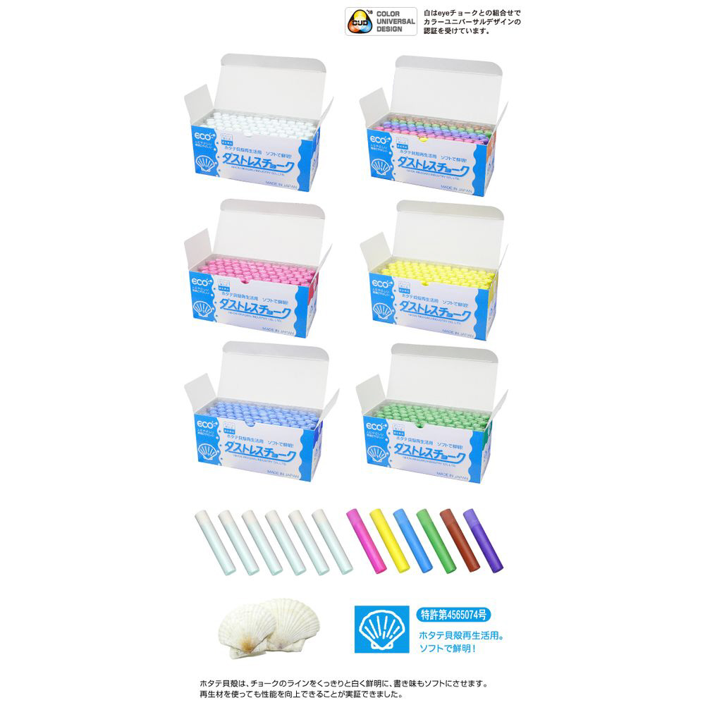 ・チョーク: 炭酸カルシウム、ホタテ貝殻粉末、顔料