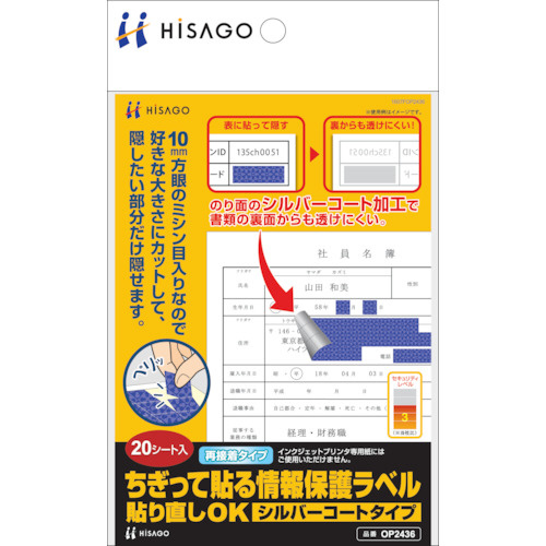 ・ヒサゴ ちぎって貼る情報保護ラベル貼り直しOKシルバーコート