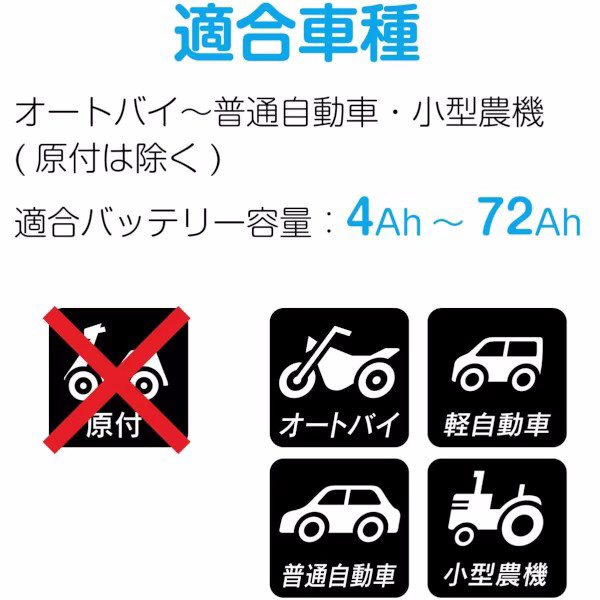 ■適合バッテリー容量:4〜72Ah