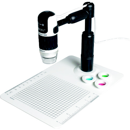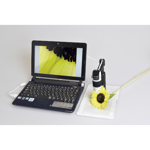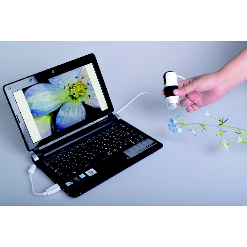 パソコンに接続して使用するハンディタイプの顕微鏡です。小さい微生物や物質などを拡大して60/250倍(17インチモニター使用時)で観察可能です。