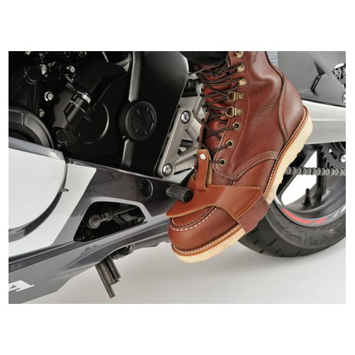 重ねた革の形状により、つけたまま歩いても外れにくいシフトパット。