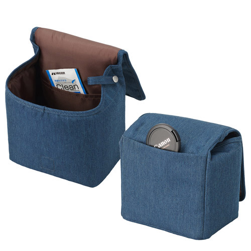 カジュアルなデニム調のツイル生地と風合いのある革調素材を使った、おしゃれなカメラケースです。3色のラインナップからお好みの色を選ぶことができます。