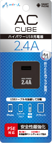 | 商品名 | 2.4A スマホ用USB充電コンセントアダプタ キューブ ブラック AKJSD24ABK [1ポート] |