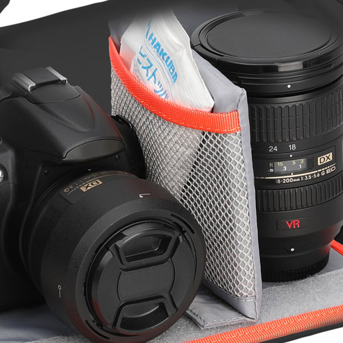 ボックス内部中央の仕切りにはメッシュポケットが付いていますので、乾燥剤を入れて効率よく吸湿、除湿することができます。中仕切りはベルクロ式で着脱可能なので、レイアウトを自由に変更することができます。※乾燥剤は付属していません。