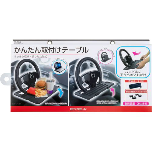 | 商品名 | 車内用品 EXEA(エクセア) テーブル かんたん取り付け折りたたみテーブル 耐荷重量:3kgまで |