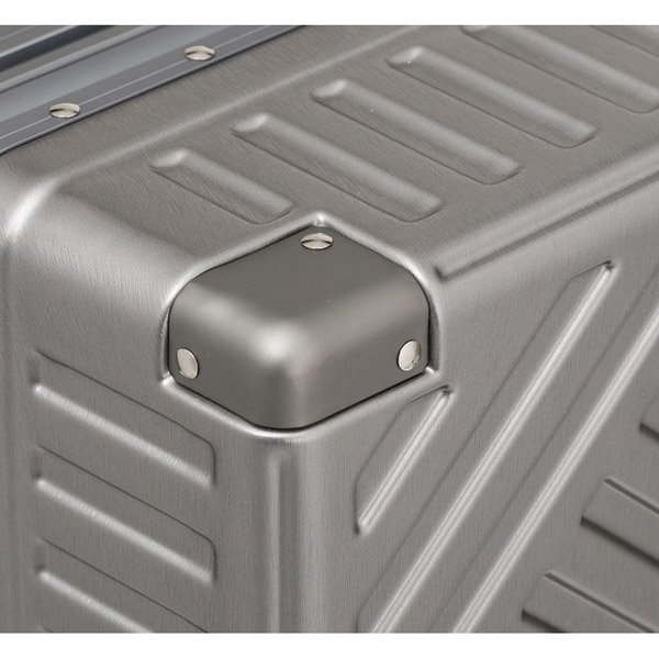衝撃を受けやすいコーナー部分にはアルミニウム合金製のコーナーパッドを装備。