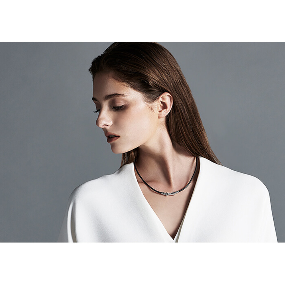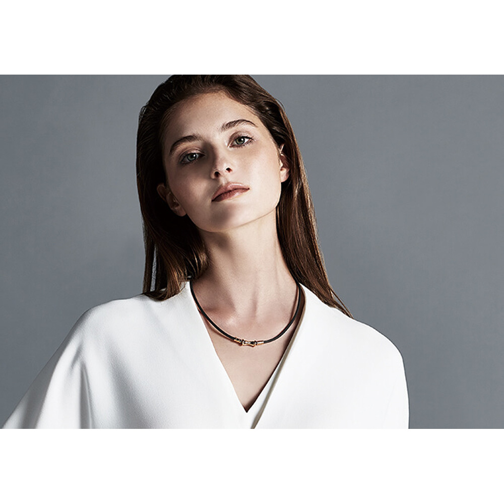 ジョイントを兼ねたトップ部分は、左右どちらからでも外せる設計。ループとトップが独立した構造なので、しなやかでやわらかい着け心地で首回りにフィットします。