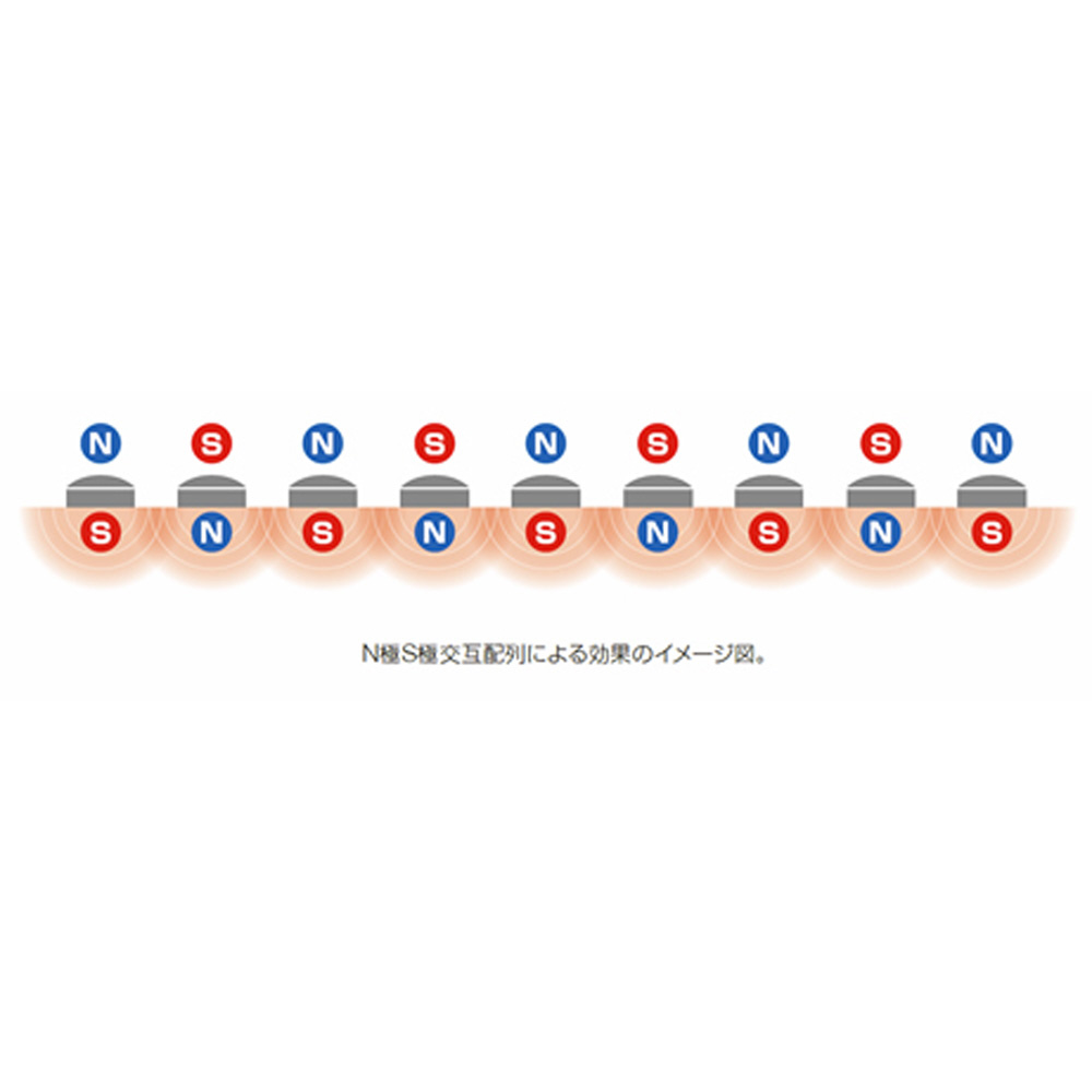 コラントッテは永久磁石を、独自のN極S極交互配列で配置した医療機器です。また、独自のN極S極交互配列によって磁力を広範囲に影響させることができます。この配列により点ではなく面での効果を得ることができ、着用しているだけで血行を改善しコリを緩和します。