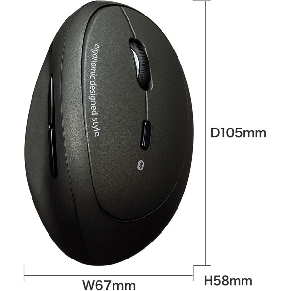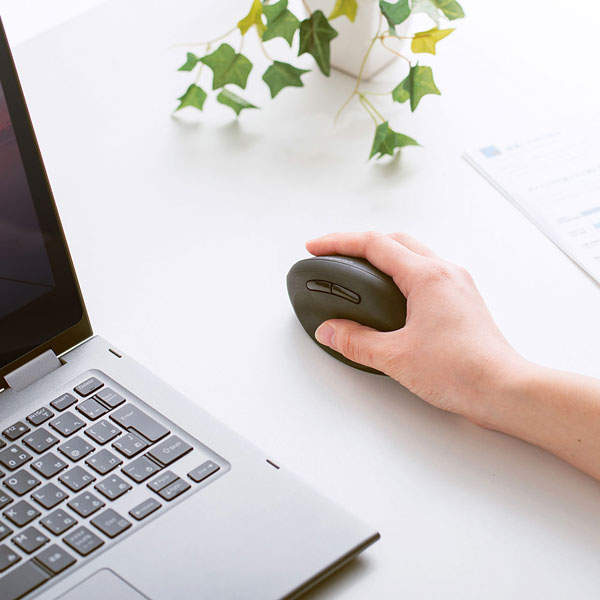 人間工学形状で手首の負担を軽減できる、エルゴノミクス形状のBluetoothマウス。