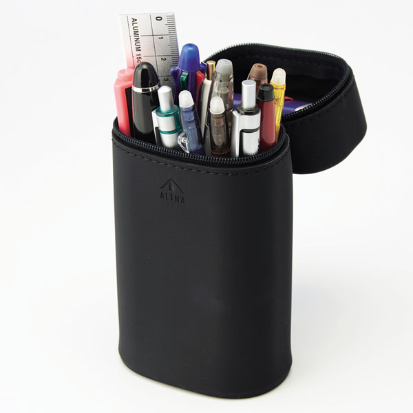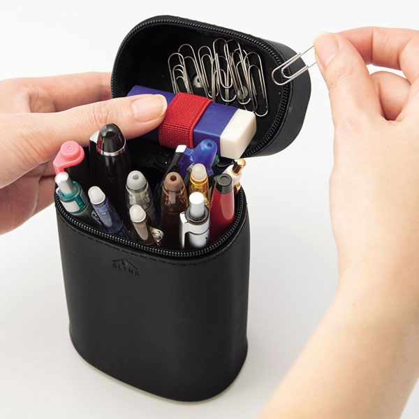 マグネット入りのフタでスチール面にピタっと貼り付けできるスタンドペンケース