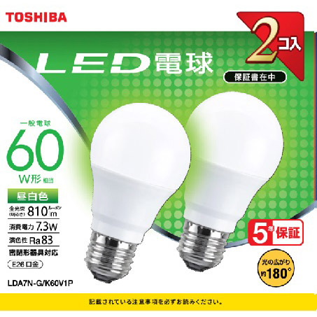 一般電球60W相当(2個入り)昼白色「LED電球 E26配光角180度 60W形相当(810lm)」