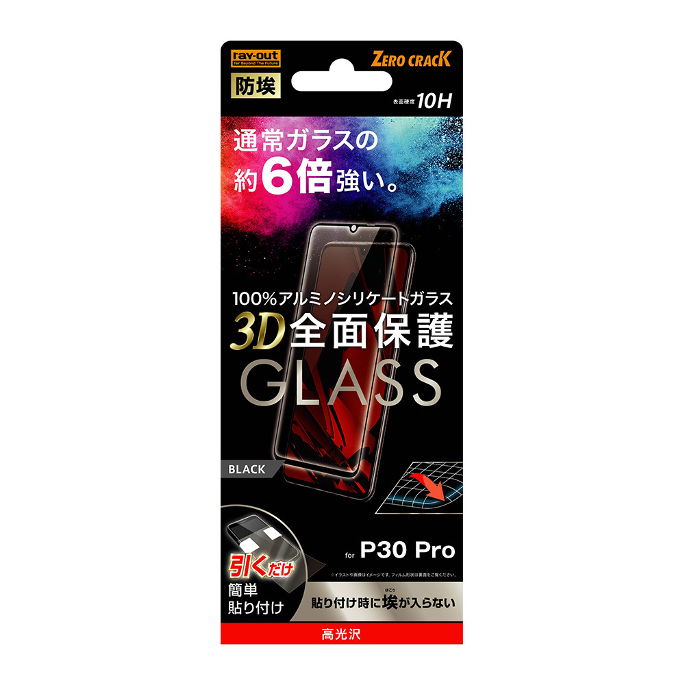 HUAWEI P30 Proガラス防埃3D10Hアルミノシリケート全面光沢/ブラック RT-HP30PRFG/BCB