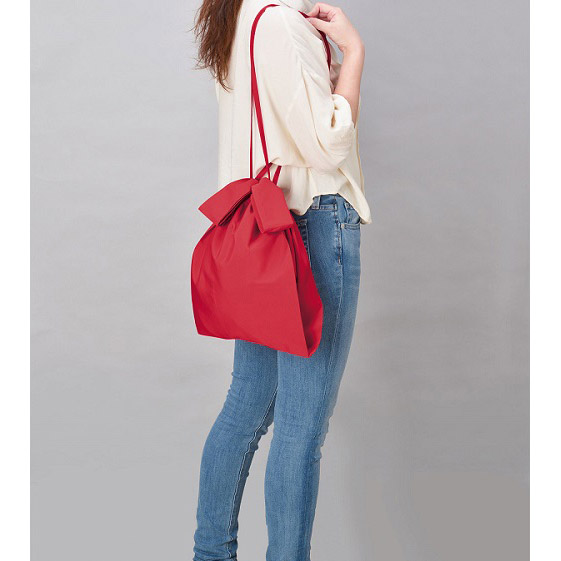 中身が取り出しやすい巾着型エコバッグ。シンプルな5色を展開。