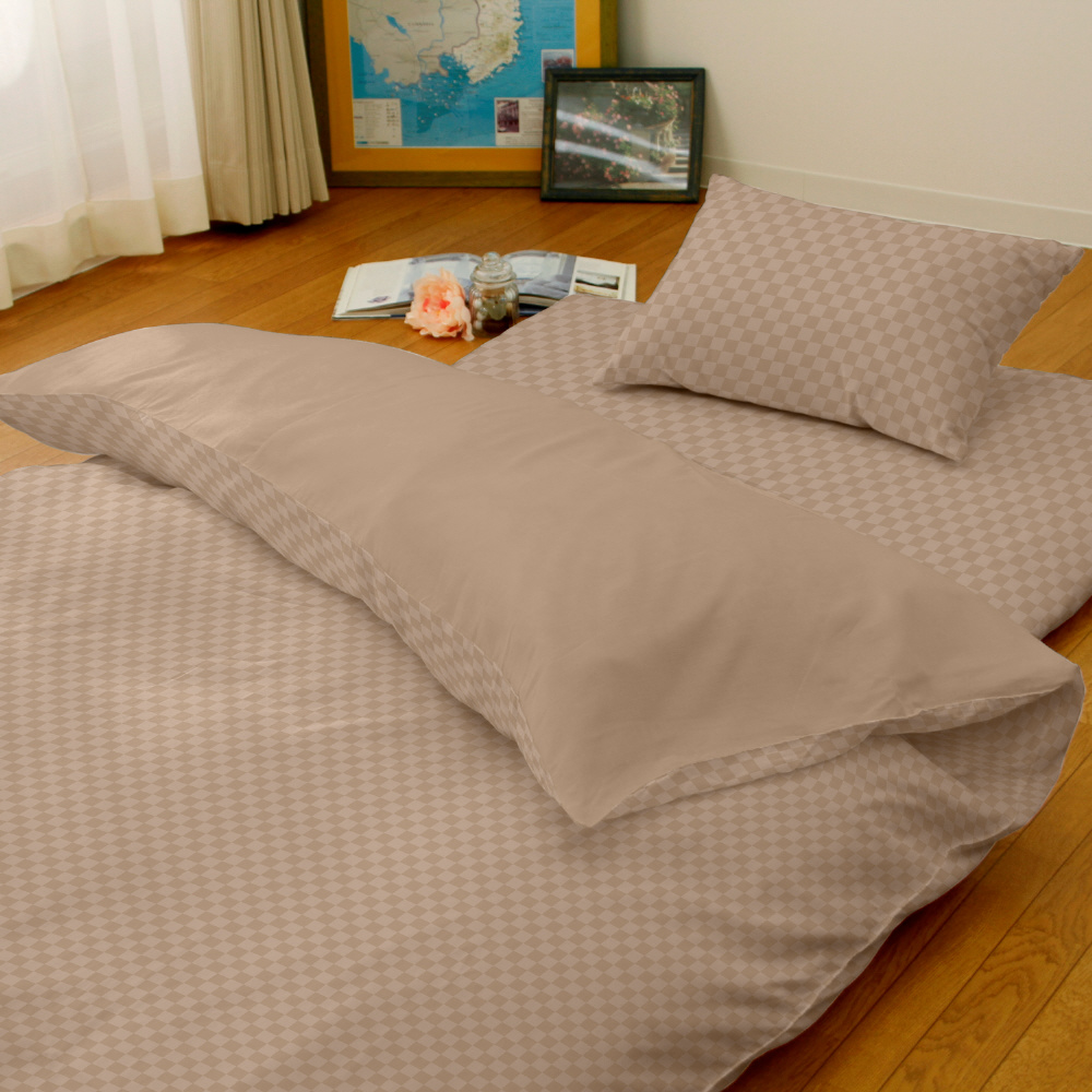 メリーナイト 敷き布団カバー 市松柄 ベージュ シングルロング 約105×215cm 光沢感 和モダン 速乾 シワになりにくい 洗える PE13101-96 メリーナイト(MerryNight) ベージュ PE13101_96 [シングルロングサイズ]