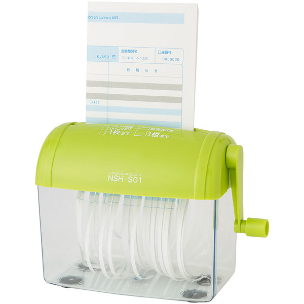 | 商品名 | NSH-S01GN ハンドシュレッダー ハンドシュレッダ クルッキルストレート グリーン [ストレートカット /A6サイズ] |