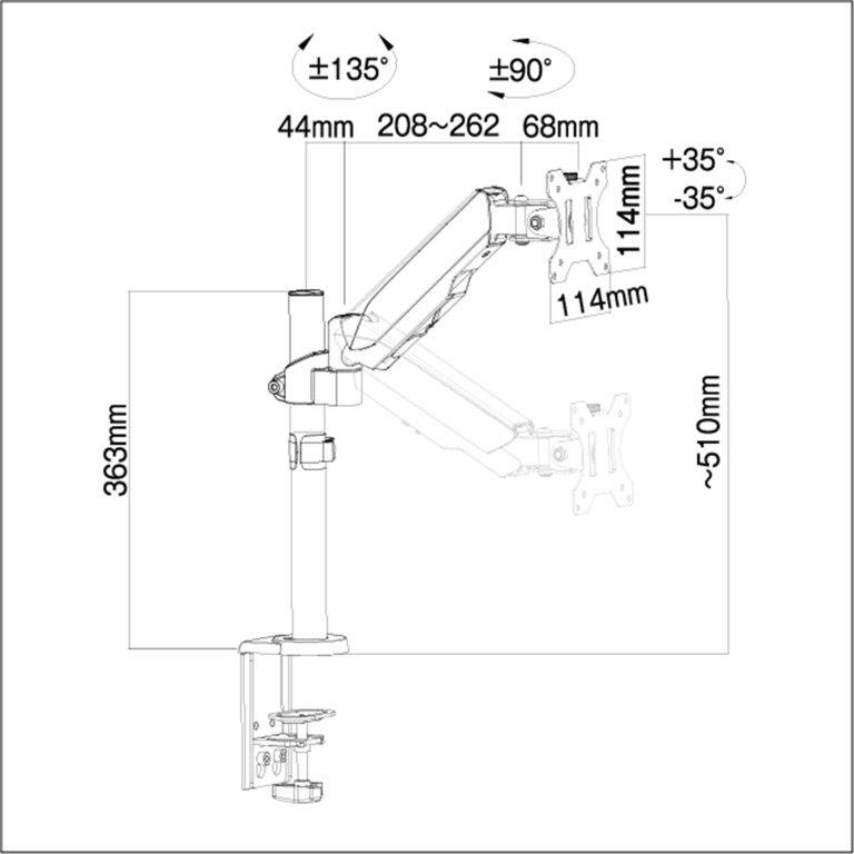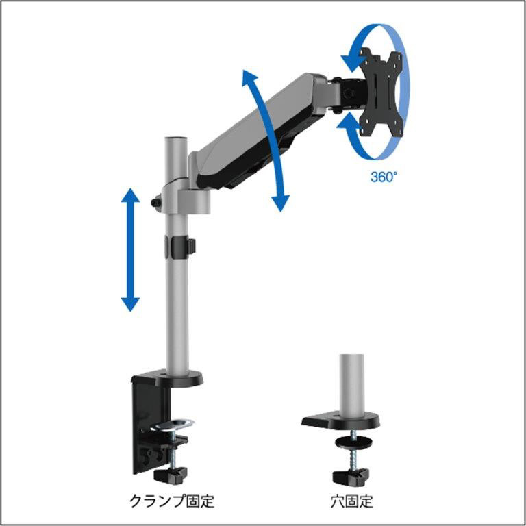 小型モニターアーム パイプイメージのスタイリッシュデザイン 小さな設置面積にも対応できる小型ディスプレイ用の壁掛金具