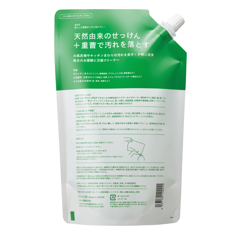 | 商品名 | 暮らしの重曹せっけん泡スプレースパウト |