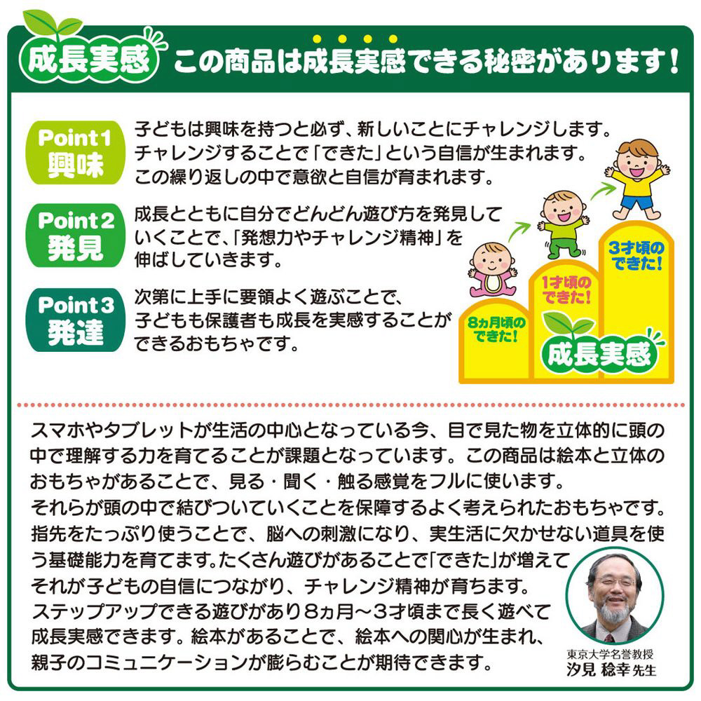 ゆびさきの発達を促す23種類の遊びが入ったボックス型の知育玩具です。