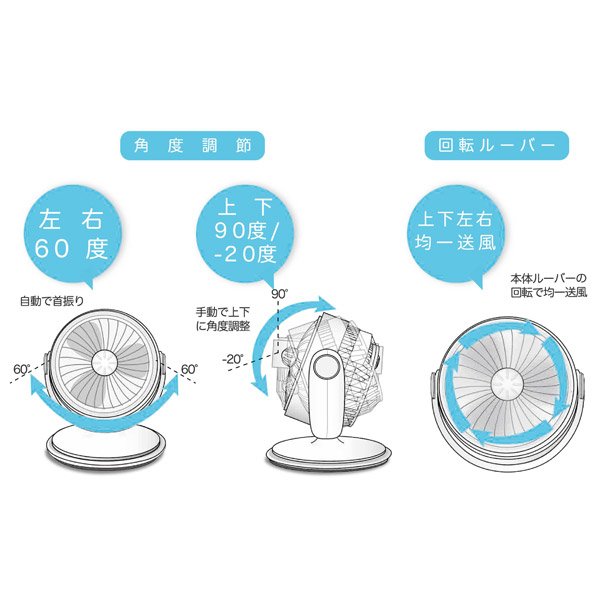 室内の空気循環・洗濯物の乾燥・お部屋の換気・扇風機としても使えるサーキュレーター