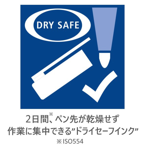 ステッドラー独自のドライセーフインクがペン先に薄い被膜をつくり乾燥を防ぐため、キャップを閉め忘れても3日間いつでも書き出すことができます。