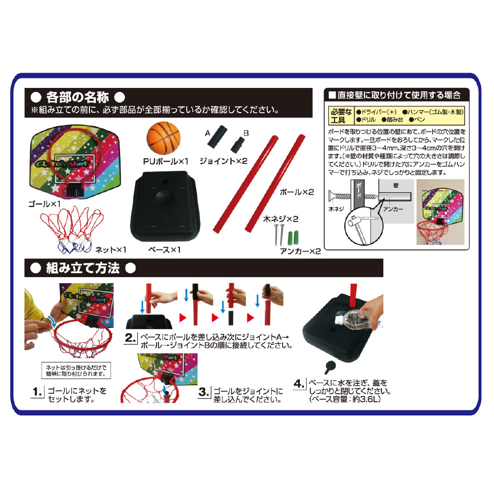 水や砂を下部タンクに入れて使用します。 ゴールリングにぶら下がったり、ダンクシュートは絶対にしないでください。野外に放置せず、使用後は片づけてください。
