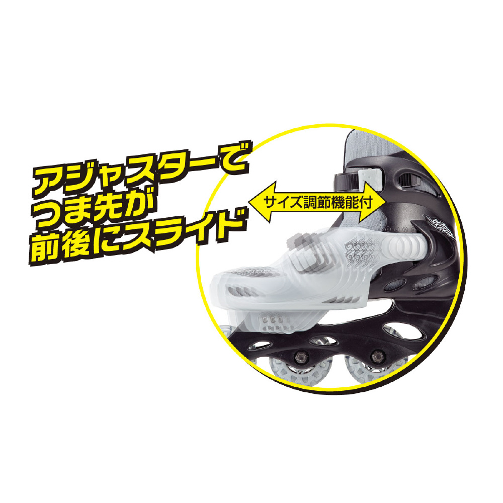 お子様へのプレゼントに!アジャスターでつま先が前後にスライドできる調節タイプ。