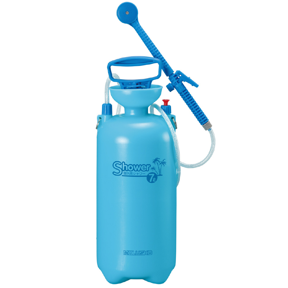 潮水や汗でのベタベタをすっきり洗い流す!手動蓄圧式でスムーズな配水。レバーを押している間だけシャワーが出る断続シャワー。レバーをロックするとシャワーが出続ける連続シャワータイプの2通りの使用が可能。ホースは長めの160cm。水があればどこでも使えるので洗車やお掃除、園芸などにもお使い頂けます。ちょうどいい7Lタイプ。
