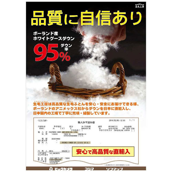 軽さ、通気性、ともにおすすめの生毛(うもう)ふとんです。