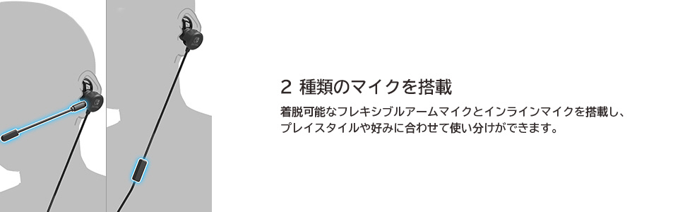 ■ 装着感と臨場感のあるクリアな音質を追求したアームマイク付きゲーミングイヤホン。