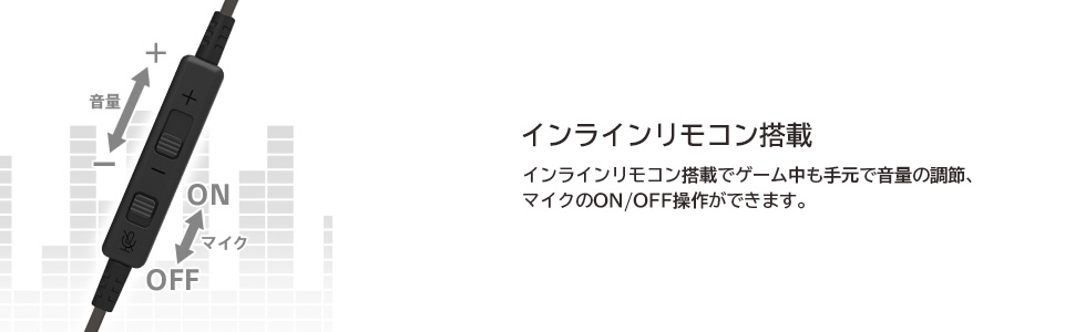 ■ 音量調節、マイクのON/OFFを手元で操作できるインラインリモコン搭載。